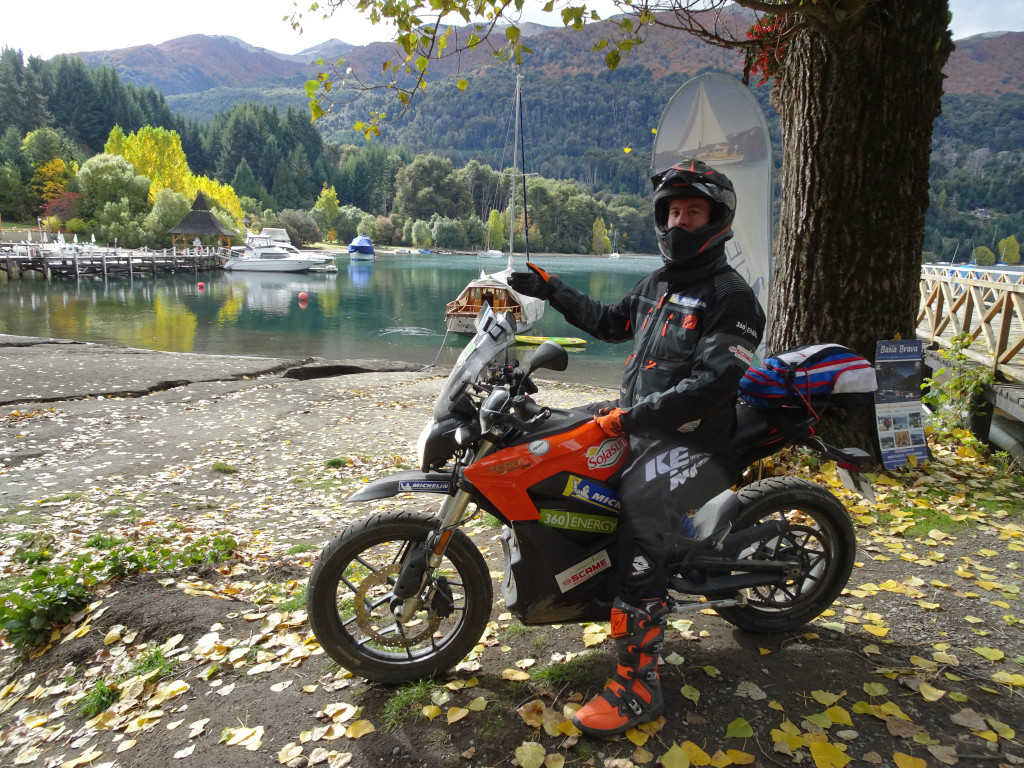 Sur la place de notre destination finale, San Martín de los Andes, l’accueil est incroyable. Beaucoup d’habitants, une grande partie du conseil municipal sont présents -les responsables du tourisme, de la presse, de l’environnement, et Rubén Kalmbach qui travaille à la municipalité et fait aussi partie de l’AAVEA et surtout tous les professeurs et élèves du lycée technique spécialisé en énergies renouvelables. L’ambiance est festive, les questions fusent de partout, et chacun veut essayer les voitures. Des cyclistes s’approchent pour nous montrer leurs propres vélos électriques fabriqués par une marque argentine. Le show de moto trial de Bastien Hiyete devient le clou de la journée.